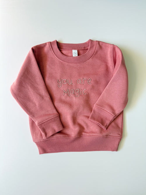 "You Are Magic" Embroidered Kids Crew Neck - Mauve