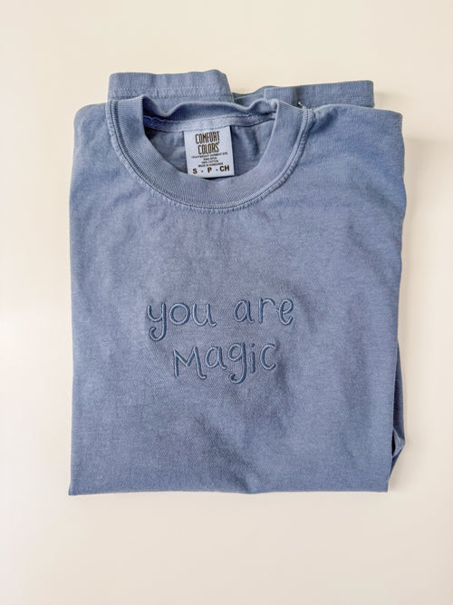"You Are Magic" Embroidered Blue Jean Unisex Short Sleeve Tee